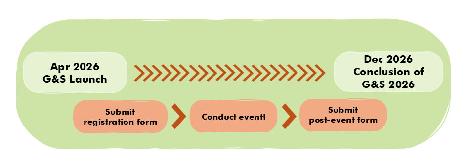 - Getting started guide – New to G&S? Check out our briefing slides for helpful tips on planning your event and completing the registration form.